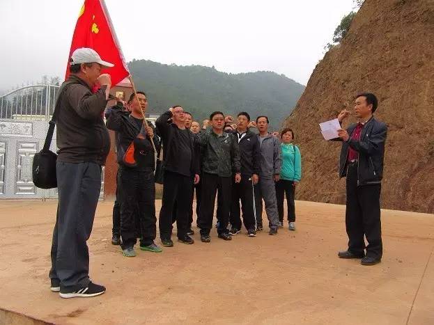 在红军长征途经点—龙王庙,县委常委、县委政法委书记王建坤同志对活动作动员,并就有关红军长征经过嵩明进行党课教育;政法委党支部书记刘勇带领全体党员重温《入党誓词》;随后,全体党员干部职工,沿1935年红军长征线路徒步前往大哨。