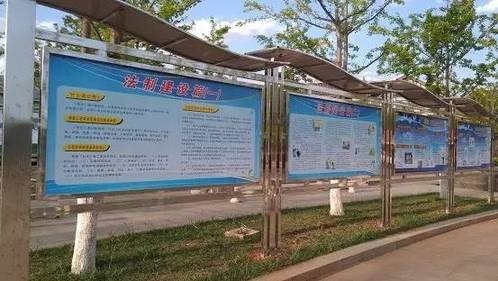 目前,第一期以“综治维稳(平安)建设”为主题宣传栏已经投入使用,宣传栏设置了文明城市创建、法治建设、交通安全、校园安全、毒品防范、火灾防范、盗抢骗防范等18个方面的内容。法治文化(银杏)广场将成为我县公益普法的新阵地、全民学法的新窗口。