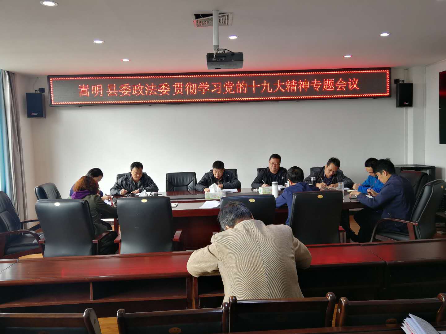 10月30日,县委政法委副书记张永泉主持召开县委政法委机关会议,传达学习党的十九大精神和中央、省、市、县委关于学习贯彻党的十九大会议精神的要求。