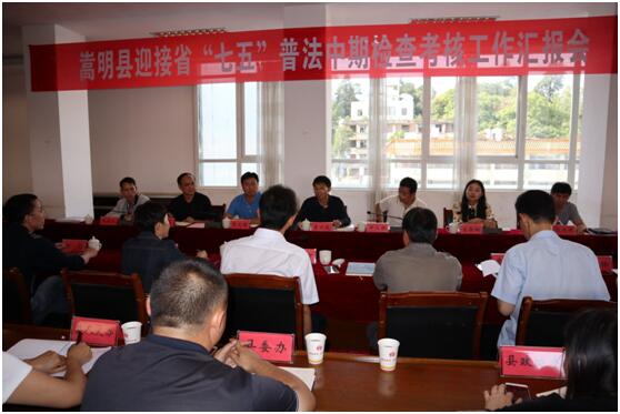 我县的“七五”普法中期工作已于8月23日通过了市督查组的检查考核,在市督查组的推荐下,我县作为昆明市的一个实地考核点,代表全市接受省督查组的考核检查,市司法局副局长周红玉等市级领导陪同。