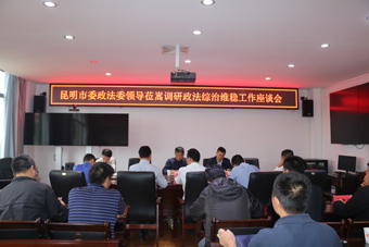7月9日,昆明市委常委、政法委书记李建阳一行6人到嵩明县调研政法综治维稳暨扫黑除恶工作,县委副书记、县委党校校长潘加智、县委常委、政法委书记王家凌陪同调研。