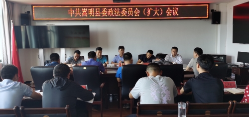 8月5日,县委常委、县委政法委书记主持召开县委政法委员会全体(扩大)会议,贯彻落实习近平总书记考察云南时的重要讲话精神,学习相关条例、规定、制度及文件,听取政法各单位上半年工作汇报,并对推进下半年政法重点工作、党风廉政及反腐败、政法队伍建设等工作进行安排部署。