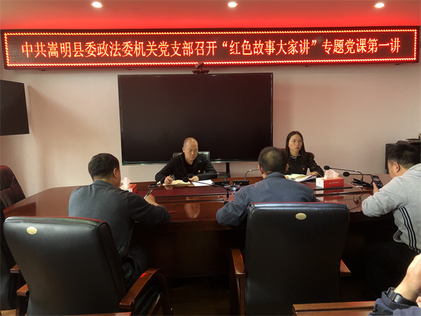 为庆祝中国共产党建党100周年,弘扬革命先烈丰功伟绩,继承革命先辈的优良传统,增强广大党员爱国主义情感,把红色记忆、红色传统、红色基因牢牢植入党员心灵。10月20日,嵩明县委政法委开展“红色故事大家讲”第一讲专题党课。县委政法委副书记张才讲授“红色故事大家讲”专题党课,政治处主任杨丽琼主持会议并传达学习了《关于认真学习贯彻习近平总书记在陕西榆林考察期间重要讲话精神的通知》、《关于深入学习贯彻中央民族工作会议精神的通知》、《关于认真学习贯彻程连元同志在中国共产党昆明市第十二次代表大会上的报告及讲话的通知》等文件精神。